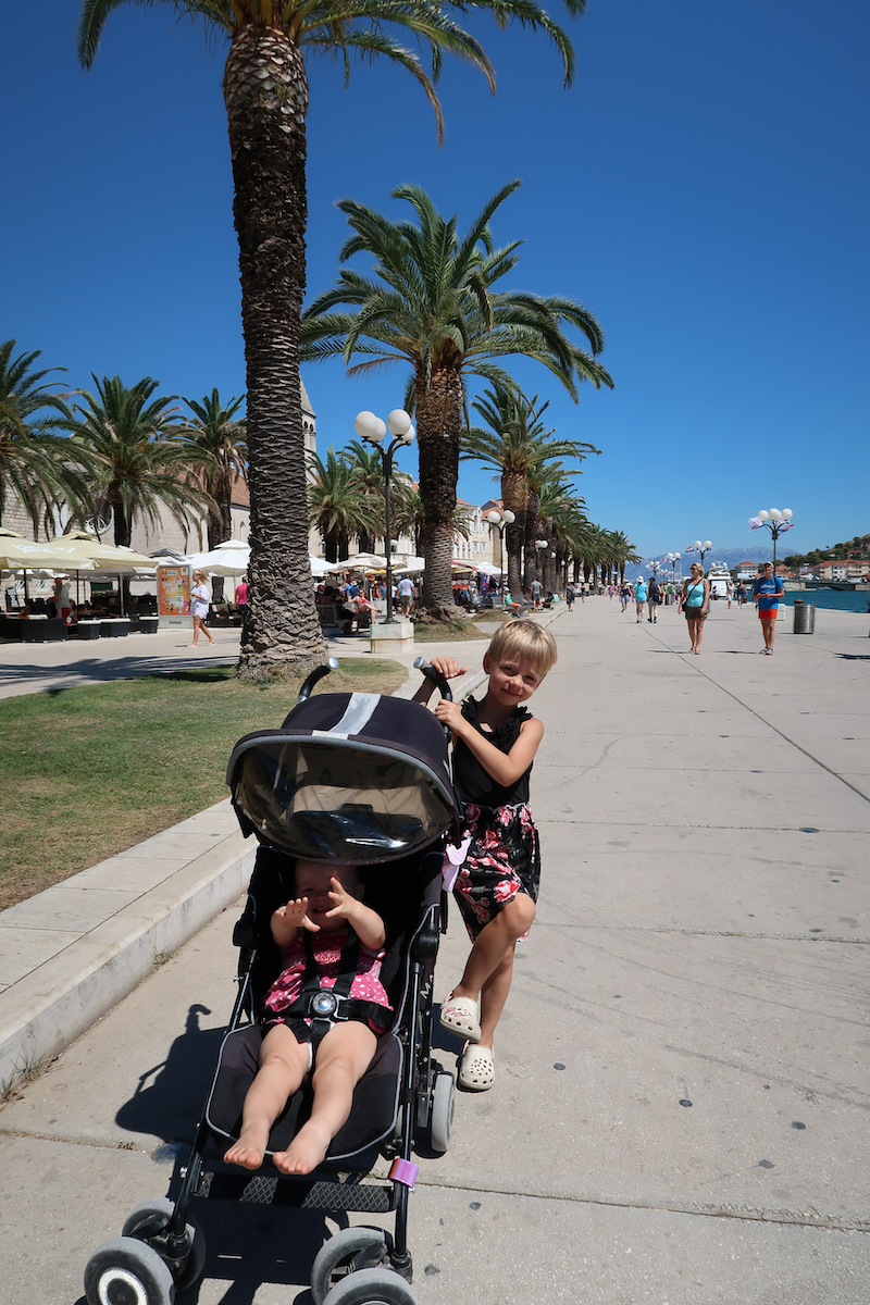 We walked together – two families – through the maze of narrow streets, ducked into small squares, passed cafes and souvenir stalls. Trogir is touristy, no question about it, but that doesn’t take away from its charm. The stone is old, the streets are genuine, and the Kamerlengo Fortress at the western tip of the island gives a great view over the bay.